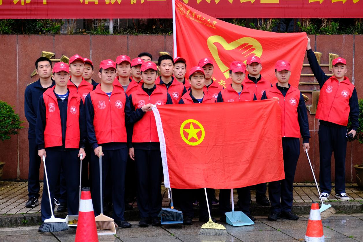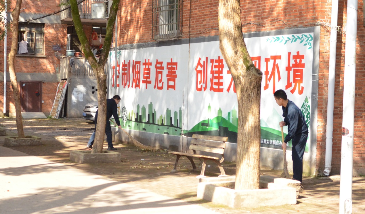 星火学雷锋小队在研究生辅导员沈登辉的带领下,来到西大街公园社区开展环境卫生整治活动。