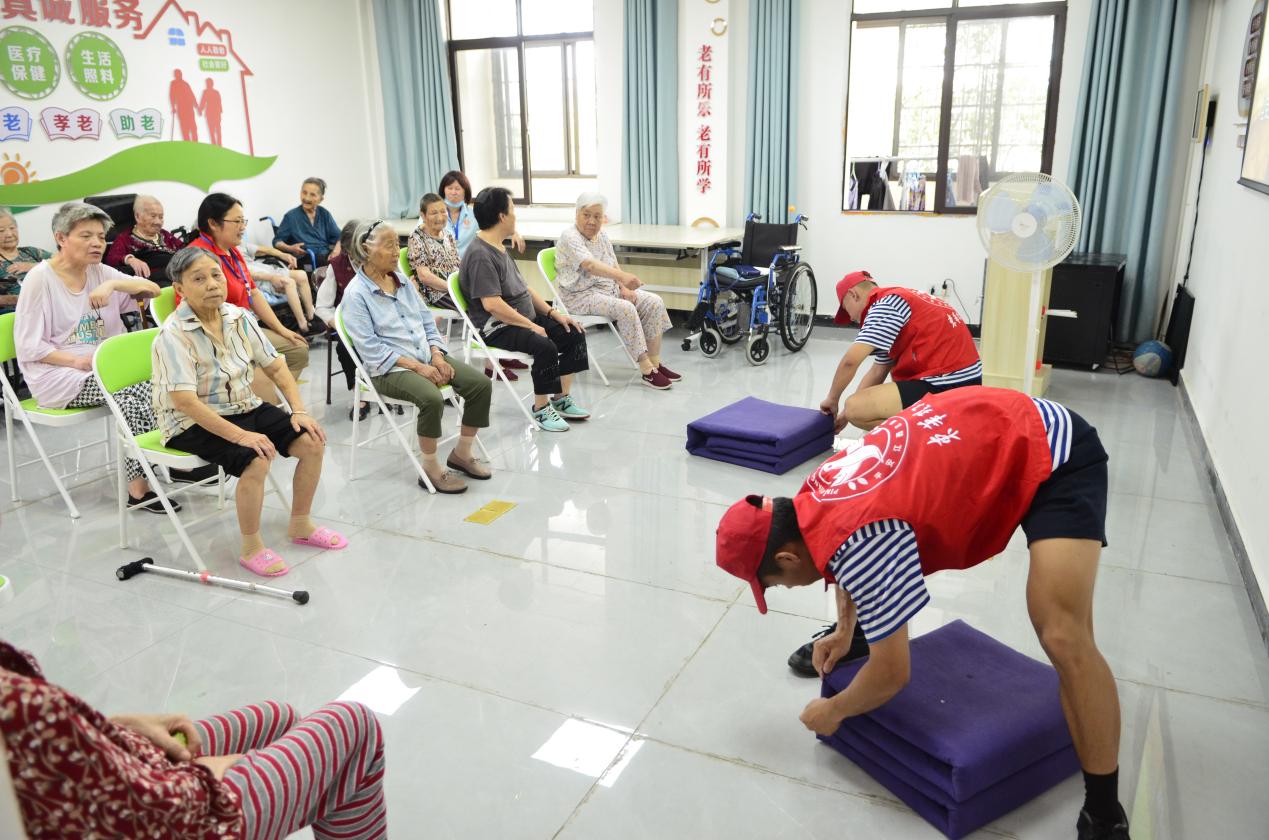活动从上午9点开始,首先由志愿者们进行队列表演,向老人们展示军人风采,以表达对老人们的敬意和尊重。随后,志愿者们进行了“叠军被”表演,吸引了众多老人们的目光和喝彩。
