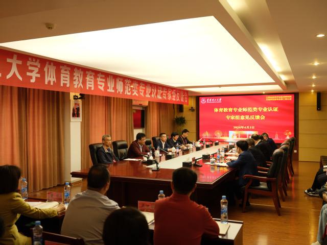 4月3日,东华理工大学体育教育专业师范类专业认证专家组入校考查反馈会在学校行政楼401会议室举行。东华理工大学校长徐景坤,校党委常委、副校长夏菲;江西省教育评估院高教所所长罗运锋出席反馈会。会议由认证专家组组长、上海体育大学副校长唐炎主持。