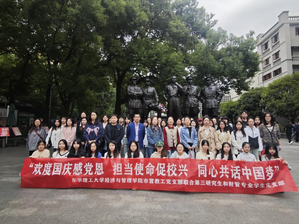 为庆祝中华人民共和国成立七十五周年,缅怀革命先烈,致敬人民英雄,传承红色基因,促进党建与教学工作更好融合,10月22日下午,经管学院市营教工党支部联合第三研究生和财管专业学生党支部组织开展“欢度国庆感党恩,担当使命促校兴,同心共话中国梦”主题党日活动。
