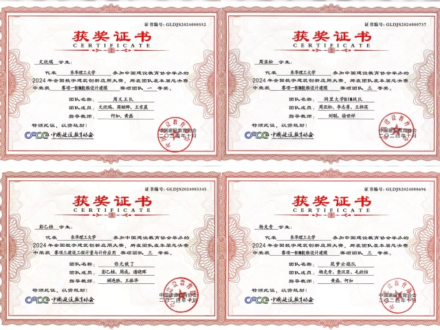 该赛事于2023年正式列入中国高等教育学会《全国普通高校大学生竞赛排行榜》,本届赛事历经3个多月赛程,覆盖国内500余所本科院校、2800余支队伍参赛,参与师生超过10000余人。在院系的指导帮助、精心组织下,由东华理工大学土木与建筑工程学院黄磊、顾连胜、何如、刘聪、徐世祥、王振华等教师指导的4支参赛队伍在大赛中实现全员获奖,荣获一等奖1项、三等奖3项的好成绩。