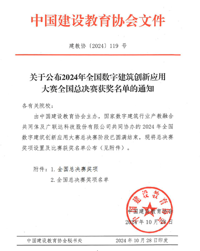 10月28日,由中国建设教育协会主办、国家数字建筑行业产教融合共同体及广联达科技股份有限公司共同协办的2024全国数字建筑创新应用大赛总决赛圆满落幕。