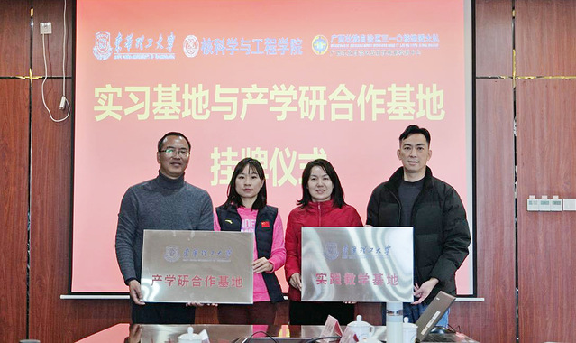仪式最后,刘义保、罗桥花共同为东华理工大学核科学与工程学院、广西三一〇核地质大队产学研合作基地揭牌;李小燕、蒋顺连共同为东华理工大学核科学与工程学院、广西三一〇核地质大队实践教学基地揭牌。