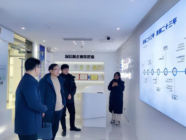在企业相关负责人的带领下,李祥一行先后参观了深信服的企业展厅、深信服的工作区域。经企业负责人介绍,李祥一行对深信服公司的发展历程、使命愿景、涉及行业、新科技产品有了更深的了解。