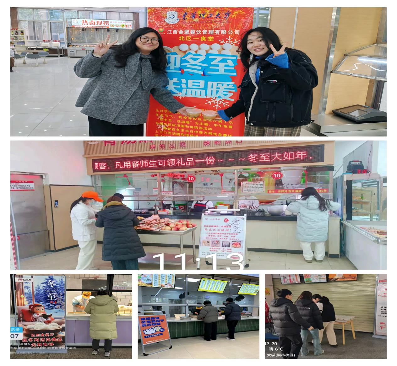 第一饮食服务中心以“冬至日”为契机,不仅营造了美好温暖的气氛,同时也让同学们明白了“一丝一缕恒念物力维艰、一粥一饭当思来之不易”的节约道理。通过此次活动,同学们积极争做“尚俭崇德”的“食”尚小达人,与食堂一起携手营造勤俭节约的良好氛围。(文/图 杨昌锐,各食堂)