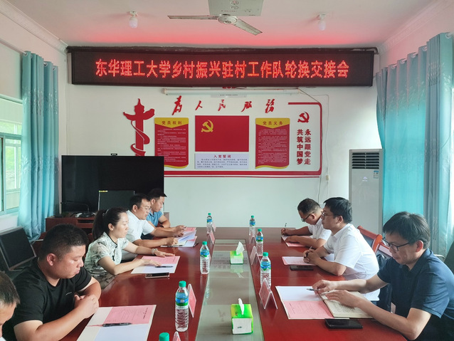 7月29日上午,东华理工大学在广昌县千善乡千善村召开2024年乡村振兴工作队员交接轮换工作座谈会。校党委常委、组织部部长金建华出席座谈会并宣布东华理工大学党委关于对驻村工作队第一书记、队长调整和新选派工作队员的决定。东华理工大学工会、驻村工作队,千善乡、千善村“两委”相关负责同志参加座谈会。