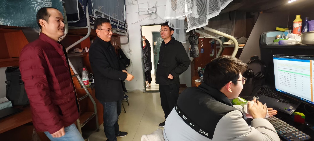 在走访过程中,鲁铁定与同学们亲切交流,详细询问同学们新学期的课程安排、学业规划和生活适应情况,重点关注毕业生考研和找工作进展。学院走访队伍还重点检查了宿舍用电安全、卫生环境和公共设施,提醒同学们严格遵守宿舍安全管理规定,注意防火防盗,共同维护安全清洁的居住环境。