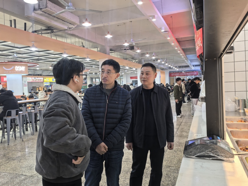 2月26日,东华理工大学副校长邓居智深入食堂检查食品安全,后勤保障处部门人员陪同。