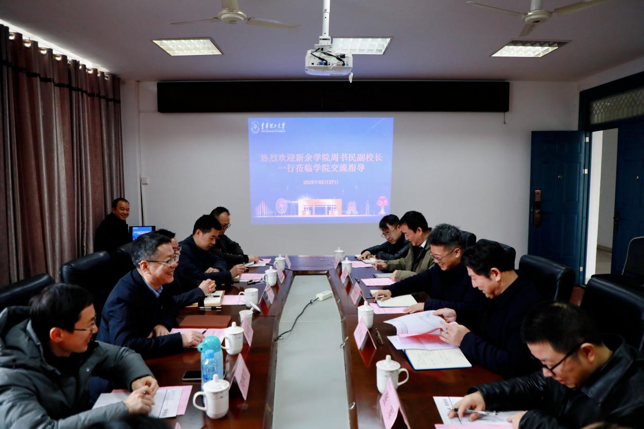 2月27日上午,新余学院党委委员、副校长周书民率队到东华理工大学机械与电子工程学院调研交流。东华理工大学机械与电子工程学院党委书记徐鹏程、院长汪志成,信息工程学院党委书记王平风、新余学院机电工程学院院长陈枭、信息工程学院院长刘和生等出席座谈会。