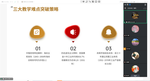 陈明华在点评中指出,讲好思政课必须在从“深”“透”“活”上下功夫。讲深,就是要充分了解中国近代史重大事件、历史人物,把握历史发展规律和历史必然性;讲透,就是要抓住中国近现代史中的主要矛盾,用事实、数据和案例说话讲透历史问题;讲活,要善于运用数字赋能教学,推动师生互动。