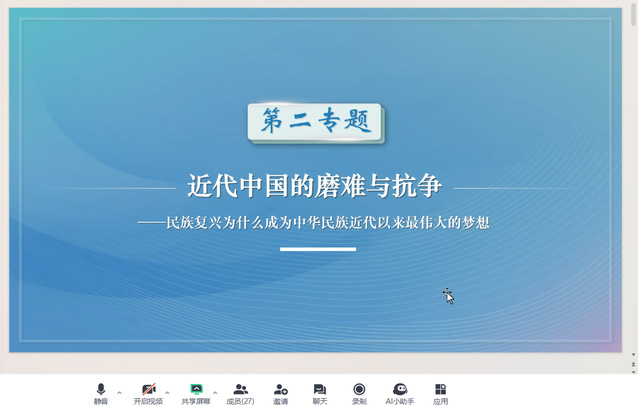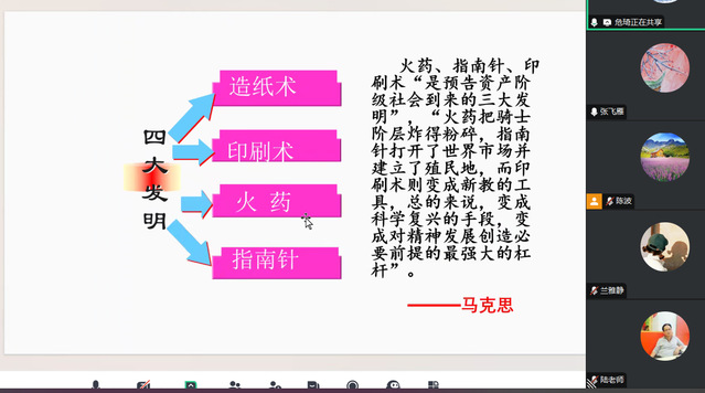 课程组教师危琦以“磨难与抗争”为主题,准确把握专题二重点难点四个部分内容,用纵向对比(古代中国vs.近代中国)→横向对比(中国 vs.同期西方)→抗争实践(失败教训与经验积累)→觉醒升华(民族意识从“自在”到“自为”)剖析四个部分重难点内容,用纵横双维对比的方法精心呈现教学设计。