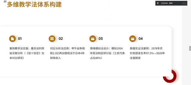 课程组教师管辉以历史逻辑回应现实关切问题为主线,将教材总结为“四大重点与三大难点”,提出构建多维教学法体系,将中国近现代史转化为学生理解当代中国的“硬核解码器”,实现知识传授、价值塑造与能力培养的三维统一。
