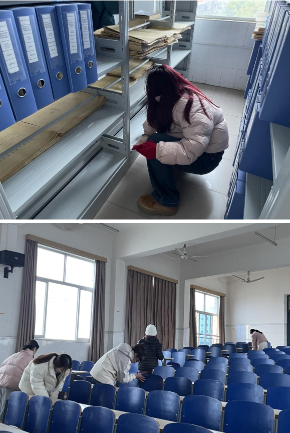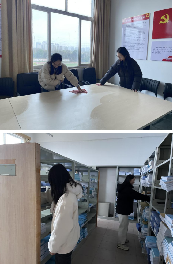 在学院研究生分会的组织下,同学们有序进入资料室、会议室、教研室等办公区域,分工协作开展卫生清扫。资料室里,同学们将散落的文献资料分类归档;走廊上,同学们俯身清理卫生死角……大家干劲十足,默契配合,经过同学们的勤奋劳动,各办公区域窗明几净,文献资料焕然一新。