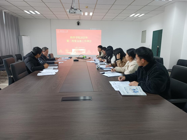 为贯彻落实新时代党的建设总要求和新时代党的组织路线,推动学院党建工作再上新台阶,3月6日下午,软件学院2025年第一次党支部工作会议在抚州校区国防科技楼1114会议室召开。会议聚焦新一年党建工作整体布局,统筹部署开学初党建重点工作,全面部署学院开学初意识形态与安全稳定工作,学院党委书记江雁飞、副书记王强出席会议并讲话,全体党支部书记参加会议。会议由学院党委组织员周勇主持。
