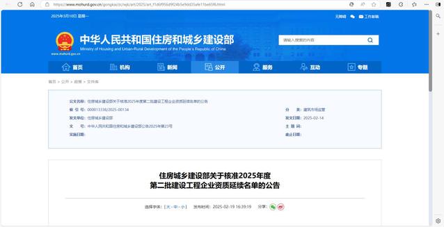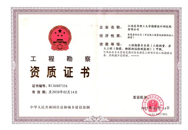 2月19日,住建部发布《住房城乡建设部关于核准2025年度第二批建设工程企业资质延续名单的公告》,江西东华理工大学勘察设计研究院有限公司成功延续岩土工程(勘察,物探测试检测监测)甲级资质和工程测量甲级资质。