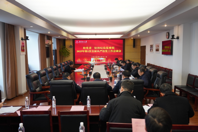 3月11日,省纪委监委驻东华理工大学纪检监察组(以下简称“驻校纪检监察组”)与东华理工大学党委召开2025年第一次全面从严治党工作会商会,共同研究部署学校2025年全面从严治党工作,就《省纪委监委驻东华理工大学纪检监察组与东华理工大学党委沟通协调工作机制》进行会商。