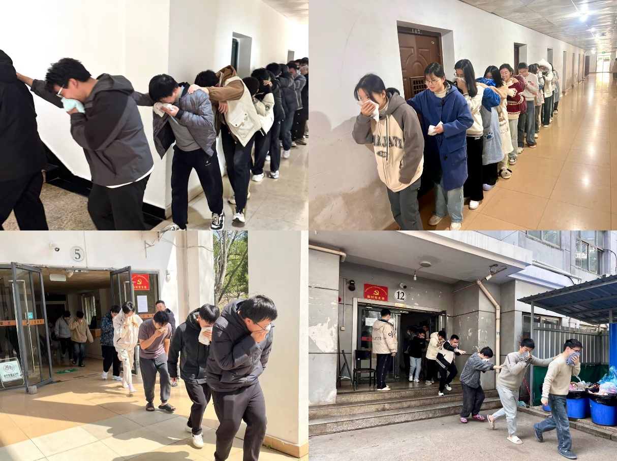 2月28日,学院在学生宿舍区组织消防安全应急疏散演练。演练模拟宿舍突发火情场景,随着警报拉响,学生在辅导员指引下,按照“低姿、捂鼻、贴墙”的规范动作,沿安全通道快速撤离至指定集结点,全程用时3分28秒,过程紧张有序。