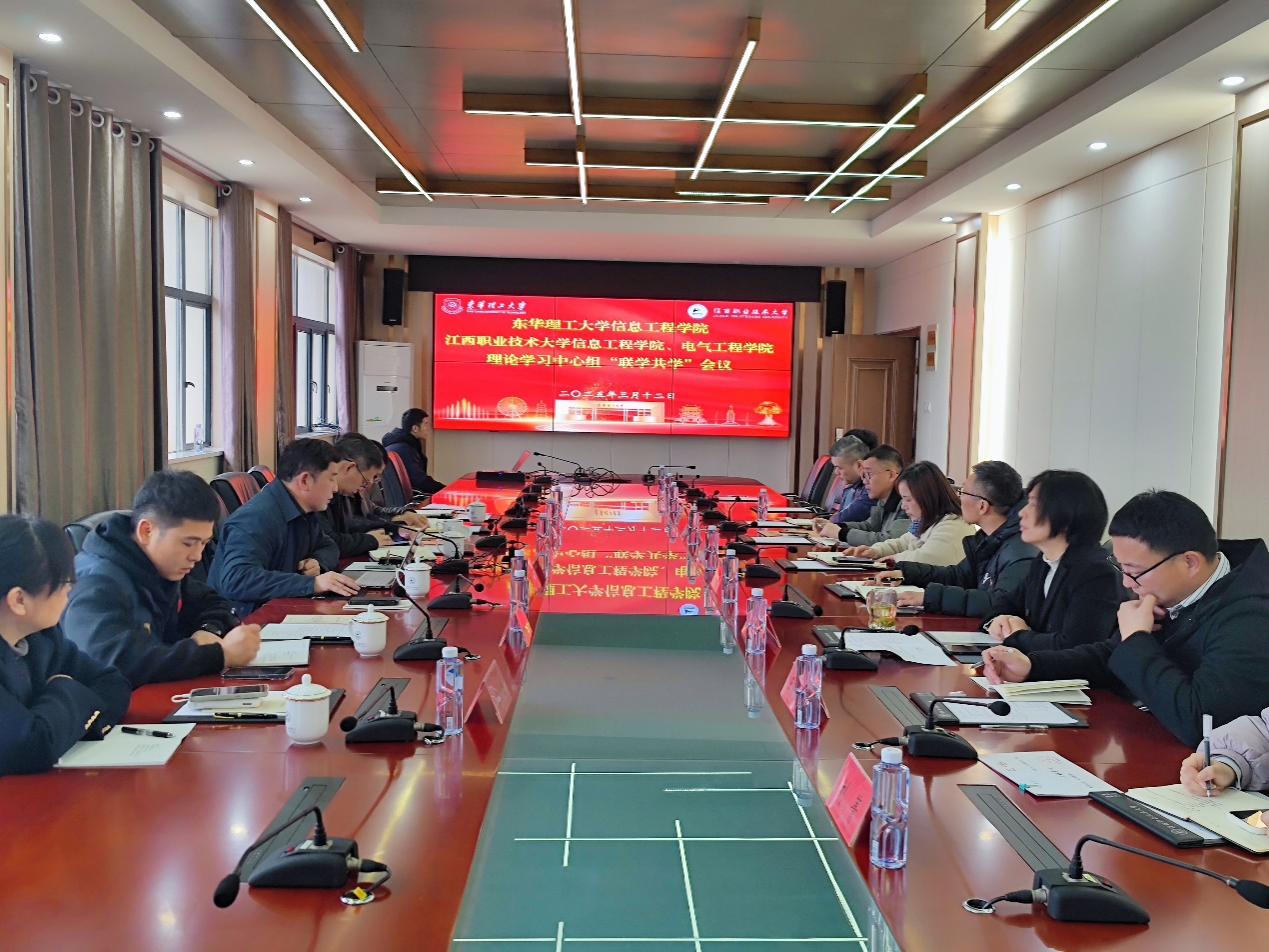 为与时代同频共振,抢抓人工智能发展的历史性机遇,3月12日,东华理工大学信息工程学院党委、江西职业技术大学信息工程学院和电气工程学院党总支联合开展党委(党总支)理论学习中心组“以学促干 联组共学”主题学习活动。