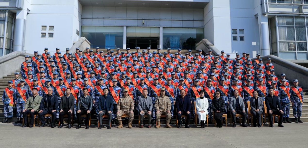 入伍欢送会在全体定向培养军士嘹亮的《中国人民解放军军歌》声中结束。会后,入伍定向培养军士合影留念。
