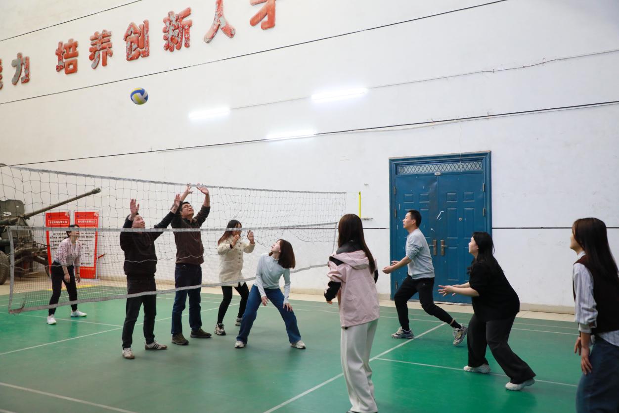活动最后,女教职工在工程训练中心球场开展趣味排球比赛。比赛过程紧张热烈,双方比分交替上升,最终通过加时赛决出胜负。活动现场气氛活跃,充分展现了团队协作与拼搏精神。