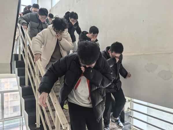 演练前,学院通过班会、专题讲座普及消防知识,讲解火灾成因、预防措施及逃生技巧,强化师生对消防安全重要性的认知。随着警报声响起,实战模拟正式启动。模拟场景设定为教学楼电路老化引发火灾,学生在工作人员引导下,沿逃生路线弯腰捂鼻有序撤离,展现了良好的应急素养。演练过程中,学生相互协作,在烟雾环境中安全抵达指定区域,切实体验了火灾逃生的紧张感与规范性。