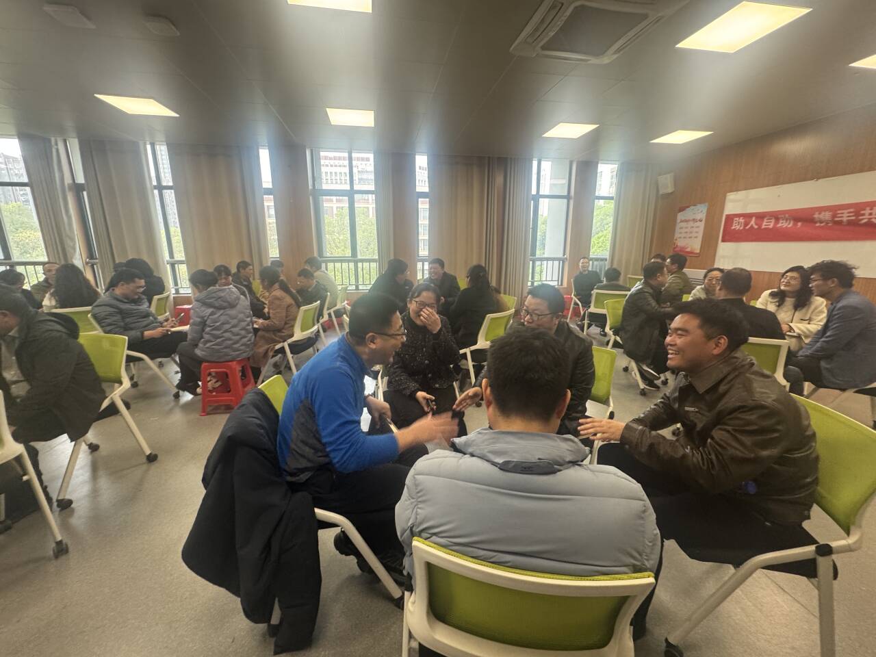 讲座伊始,舒曼教授以一则生活趣事导入,引得全场笑声连连,大家慢慢打开心扉,全身心沉浸到讲座中。随着讲座的深入推进,舒曼教授指导大家开展了一系列互动游戏,在“你笑起来真好看” 游戏中,教职工们用真诚的微笑传递温暖,在欢声笑语中营造温馨融洽的氛围;在“我总是喜欢喜欢我的人” 游戏中,教职工们加深了对人际交往中给予他人肯定与鼓励的认识和理解;在“发现自己” 游戏中,教职工们积极挖掘自身闪光点,有效增强了自信心。