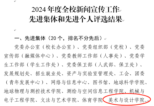近日,学校公布2024年度全校新闻宣传工作先进集体和先进个人,学院获“2024年度新闻宣传工作先进集体”称号,刘惠文老师获“2024年度新闻宣传工作先进个人”称号,学生刘彩静获“2024年度新闻宣传工作先进个人”称号。(图/文:徐春金)