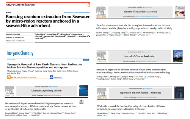 王英财多年来致力于乏燃料干法后处理及海水提铀方向研究,近3年来先后在Nature Communications、Chemical Engineering Journal、Journal of Cleaner Production Inorganic Chemistry、Journal of Hazardous Materials、ACS Sustainable Chemistry and Engineering、Separation and Purification Technology、Journal of Alloys and Compounds等国外期刊上发表20余篇高水平学术论文。(图/文 王英财)