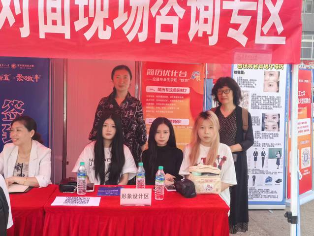 本次招聘会吸引了众多企业参与,为毕业生提供了丰富的岗位选择。招聘现场学院领导与用人单位深入交流,了解行业需求,并指导学生精准投递简历。此外,学院充分发挥专业特色,在招聘会现场咨询区设立形象设计咨询专区,为前来应聘的毕业生提供职业形象指导与咨询服务,帮助他们在面试中展现最佳状态,获得用人单位好评。