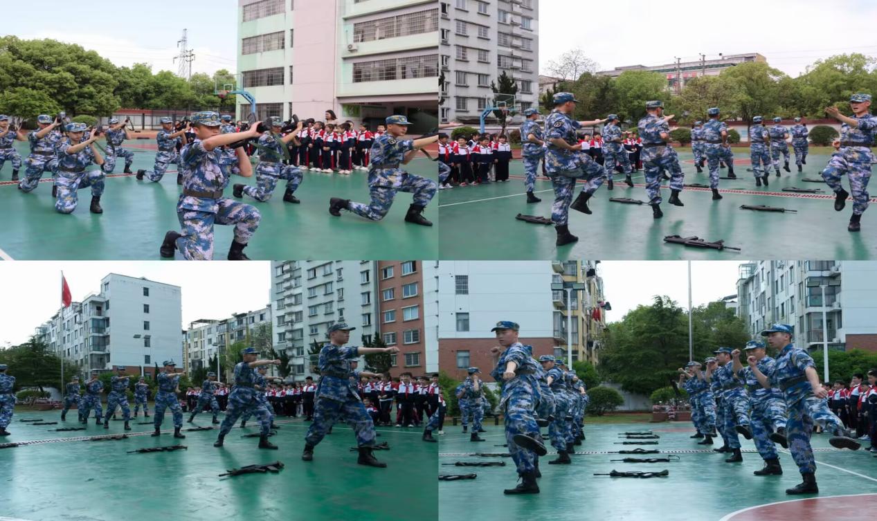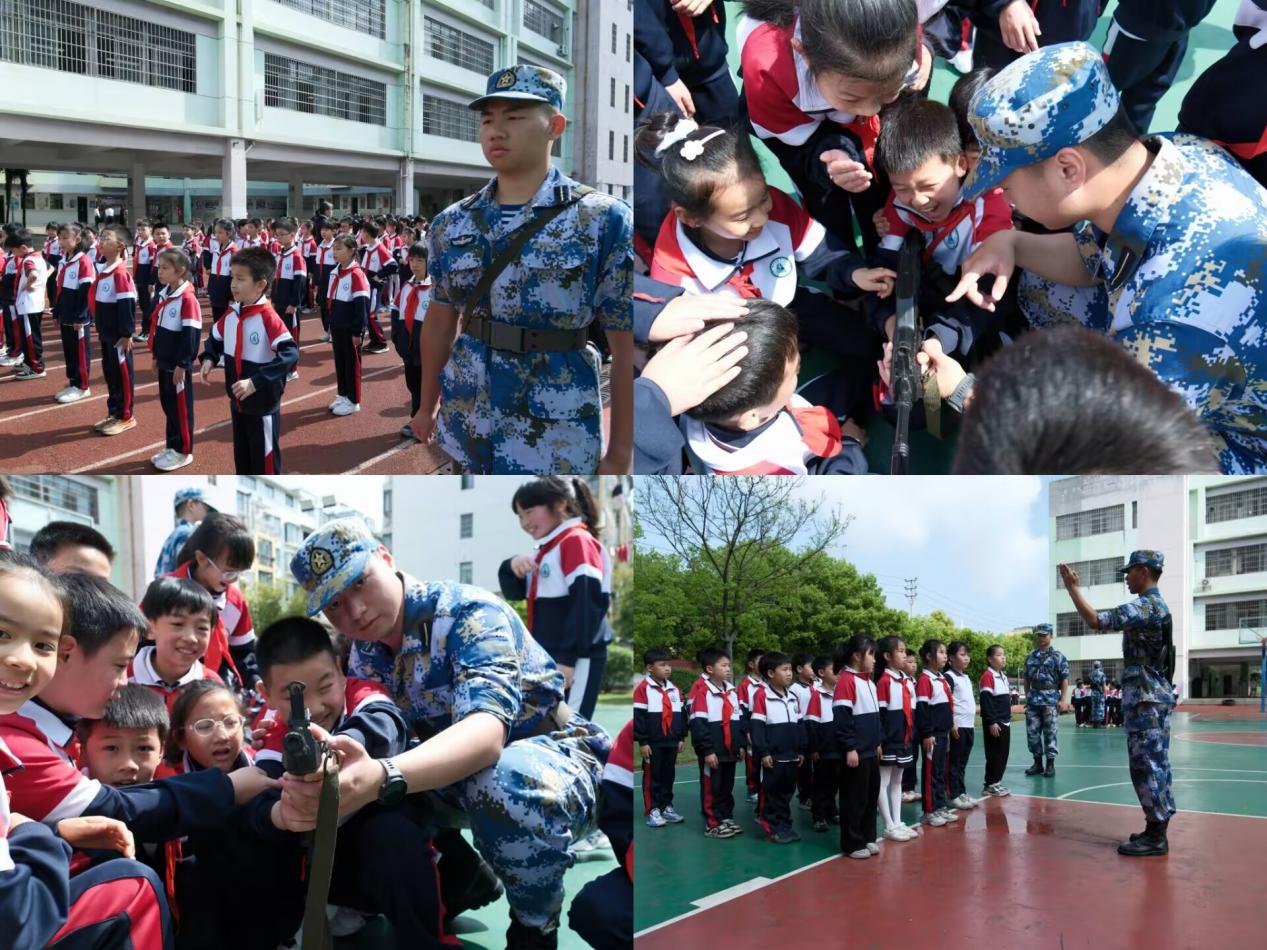 揭牌仪式后,定向培养军士们分组对临川十一小的学生开展军事训练以及精彩的军事技能展示。训练内容包括立正、稍息、齐步走等基础队列动作,学生们认真学习、积极模仿,在实践中感受纪律的严明与团队的力量。