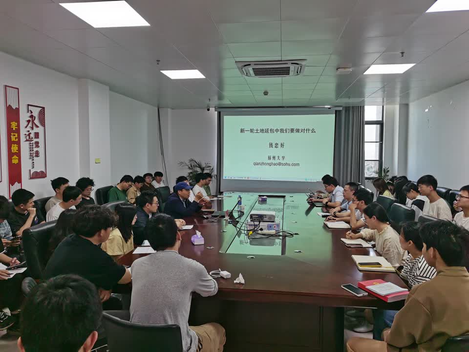 钱忠好作题为《新一轮土地延包中我们要做对什么》的学术报告。他分析和阐述了我国农村土地制度的发展历程、制度环境及应对策略,指出新一轮土地延包中既要坚持现行农地产权制度的合理内核,又要持续推进农地产权制度创新。报告结束后,钱忠好耐心回答了在场师生提出的土地热点问题。