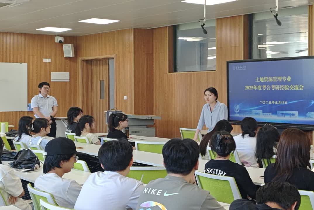 5月13日,测绘与空间信息工程学院在四教303教室举办考公考研经验分享会。班主任危小建、优秀毕业生代表及全体2022级土地资源管理专业学生参加。
